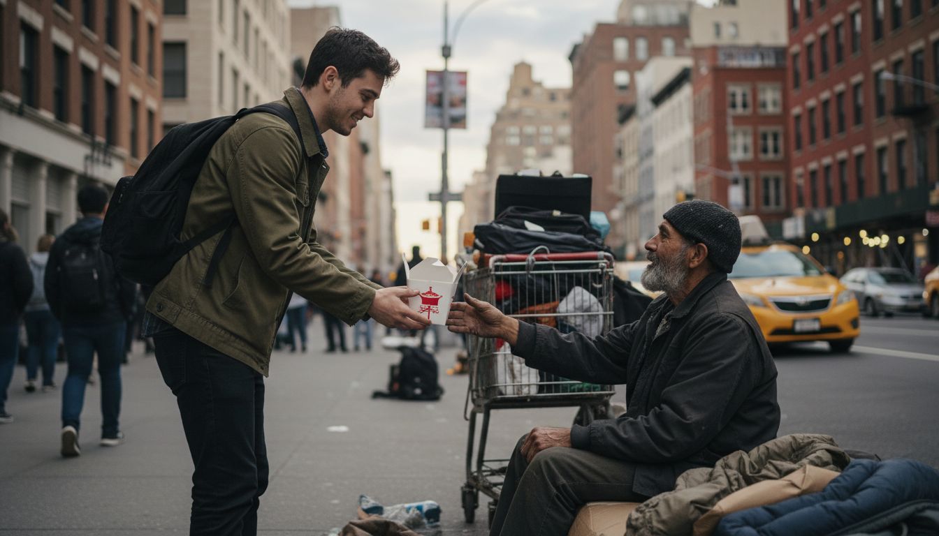 This is where food becomes something almost magical, honestly. When you hand someone cash, the moment ends right there. Thanks, bye, good luck. But when you hand them a warm meal—something you literally just cooked, still hot, smells amazing, food you'd eat yourself? Everything shifts.